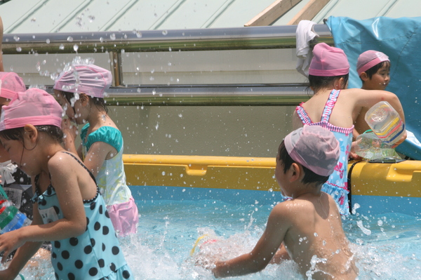屋上のプールで楽しく遊んでいます